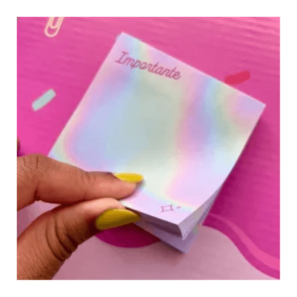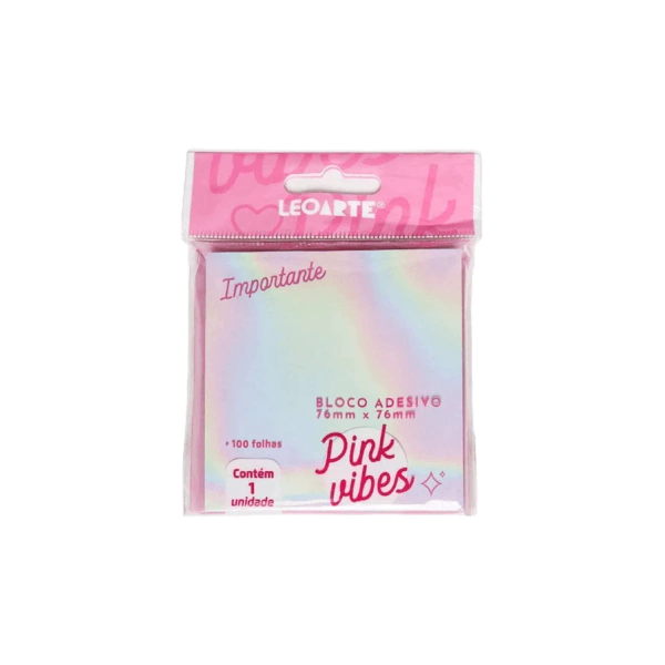 Holográfico é tendência e está entre os elementos da coleção Pink Vibe. E o Bloco Adesivo Pink Vibes é perfeito para organizar na sua rotina. Cada bloco vem com 100 folhas produzidas com papel e adesivo acrílico de 7,6X7,6 cm e 1 cm de espessura. Garanta já o seu e faça o rosa colar de vez nesta temporada.