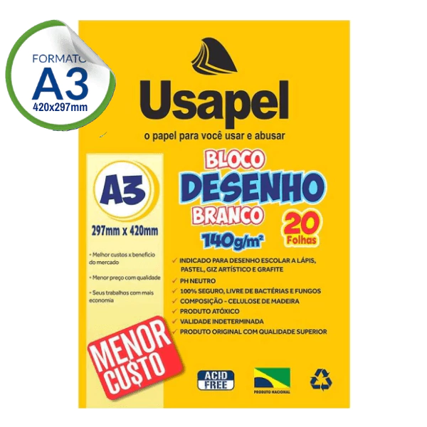 Descubra o Bloco de Desenho A3, ideal para artistas e estudantes que buscam qualidade em seus trabalhos. Com 20 folhas de papel branco, este bloco possui uma gramatura de 140g/m², proporcionando uma base perfeita para desenhos, esboços e pinturas.