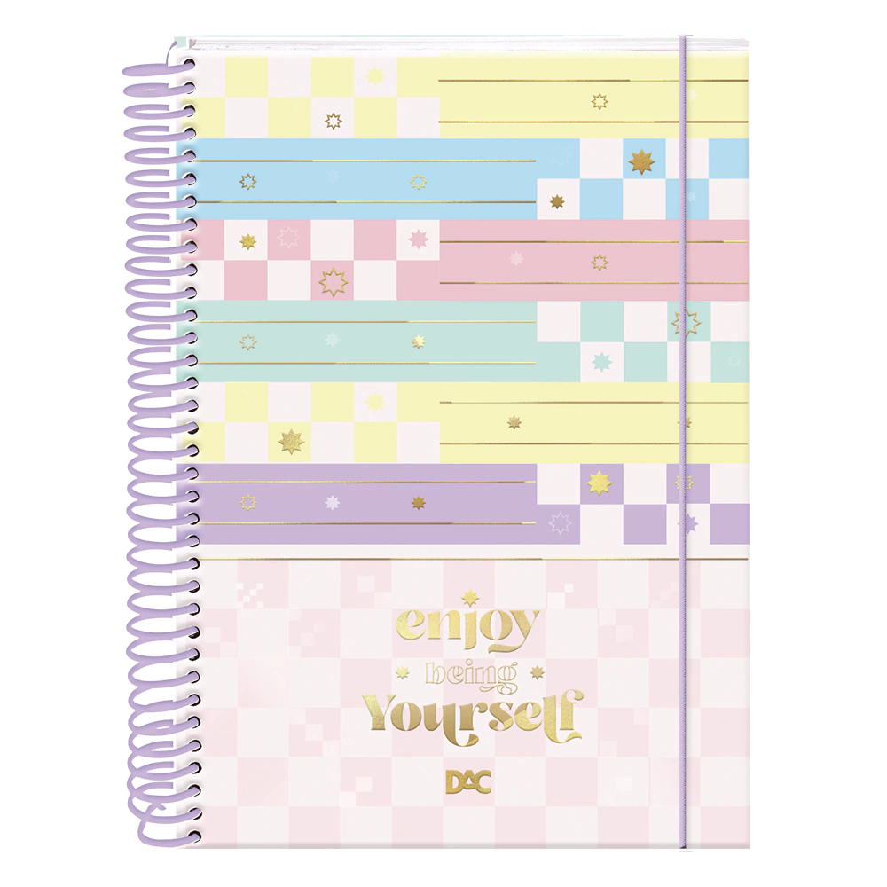 O caderno ideal para acompanhar todo o conteúdo dos estudos e compacto para ficar mais confortável. Inclusive é perfeito para quem quer usar o caderno apenas para as anotações diárias. Tem capa dura e acabamento diferenciado, tais como: espiral em plástico que não entorta e nem machuca; fechamento em elástico podendo assegurar alguns papéis soltos dentro do caderno e evitar também que abra e amasse as folhas; com aplicações de verniz localizado e hot stamping na capa.