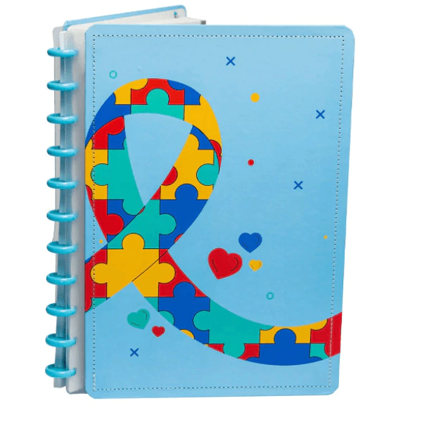 Nosso caderno Amor ao Autista é Inspirada no símbolo que representa esta condição: um quebra-cabeça colorido que representa a diversidade e a complexidade das pessoas com transtorno do espectro autista (TEA)