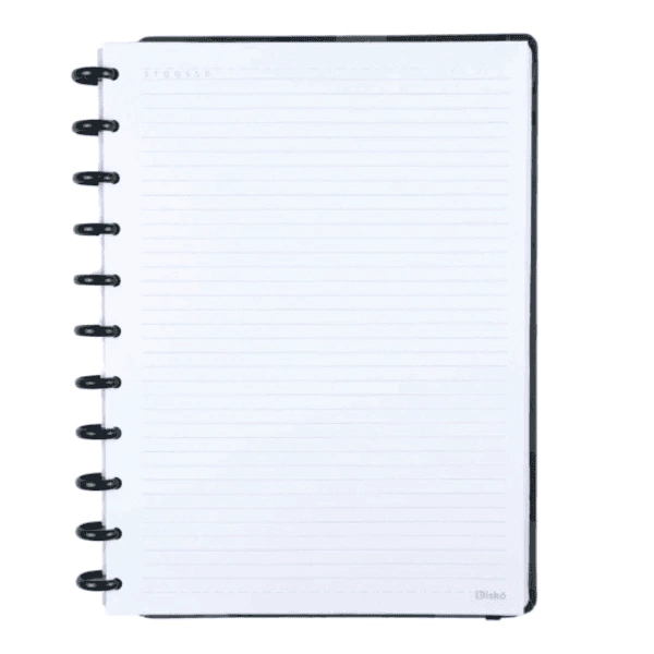 Conheça o caderno Diskô, o caderno que se adapta às suas necessidades, possibilita adicionar, remover e reorganizar as folhas como quiser, possui um sistema de encadernação inovador, que usa discos para prender as folhas do seu caderno.