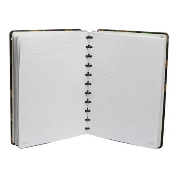 Combinar o seu caderno Camuflado com outros acessórios é fácil, a estampa simples se adapta a qualquer outra cor, além de transmitir uma imagem de força e praticidade, ideal para usar em situações acadêmicas ou profissionais.