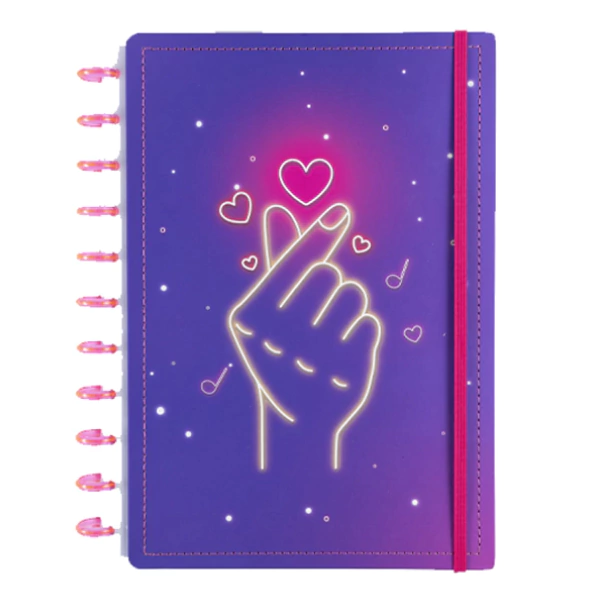Combinar o seu caderno FINGER HEART com outros acessórios é fácil, a estampa simples se adapta a qualquer outra cor, além de transmitir uma imagem de jovialidade e dinamismo, ideal para usar em situações acadêmicas ou profissionais.