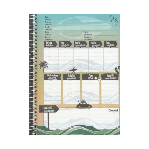 A Credeal está mais de 40 anos de mercado, com coleções que transmitem o “lifestyle” do surf. O caderno espiral Mormaii masculino é ideal para o dia a dia na escola ou na faculdade.