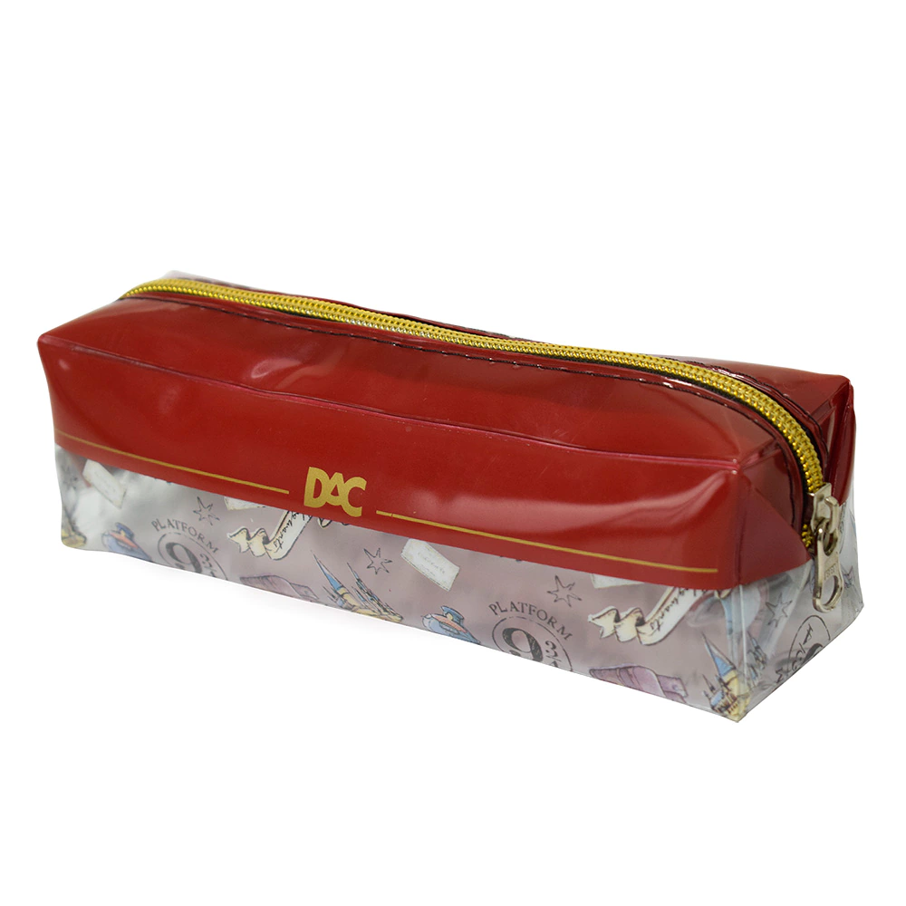 Esse estojo é perfeito para guardar seus lápis, canetas, borrachas e outros materiais escolares ou de escritório. Ele tem um design transparente que mostra os ícones dos quatro principais personagens da saga: Harry, Hermione, Rony e Dumbledore. Além disso, ele tem um zíper resistente que mantém seus itens seguros e organizados. Um produto oficial e licenciado pela Warner Bros, que garante a qualidade e a autenticidade do produto. Ele é feito de material durável e fácil de limpar, ideal para o uso diário. Se você quer mostrar sua paixão pelo mundo mágico de Harry Potter, não perca essa oportunidade e compre já o seu!