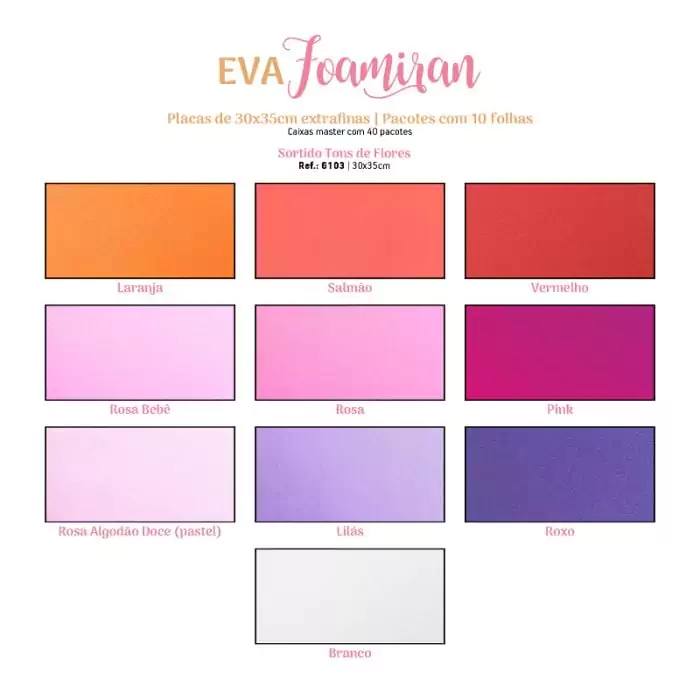 Você está procurando um material versátil e de alta qualidade para seus projetos de artesanato? Então você vai adorar o Eva Foamiran Extrafino 0,7mm 30x35cm 10 Folhas Sortida Tons de Flores. Esse produto é ideal para fazer flores artificiais, apliques, decorações e muito mais.
