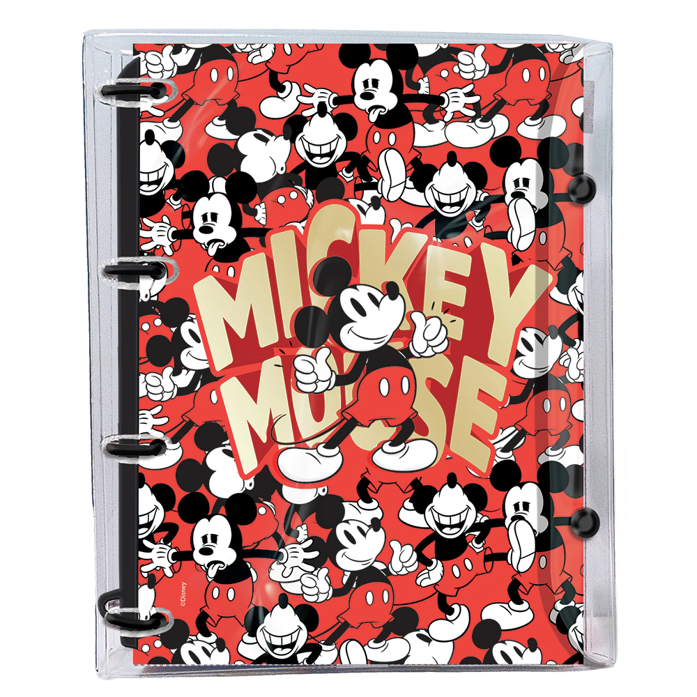 O fichário Mickey é o item perfeito para suas as atividades, ideal para estimular a organização dos estudos diários e alcançar as metas e objetivos sem perder a motivação. Cheio de versatilidade ao inserir ou retirar folhas, pois as argolas articuladas abrem, possibilitando esta ação. Útil e estiloso, foi feito para arrasar! Pronto para escola ou faculdade.