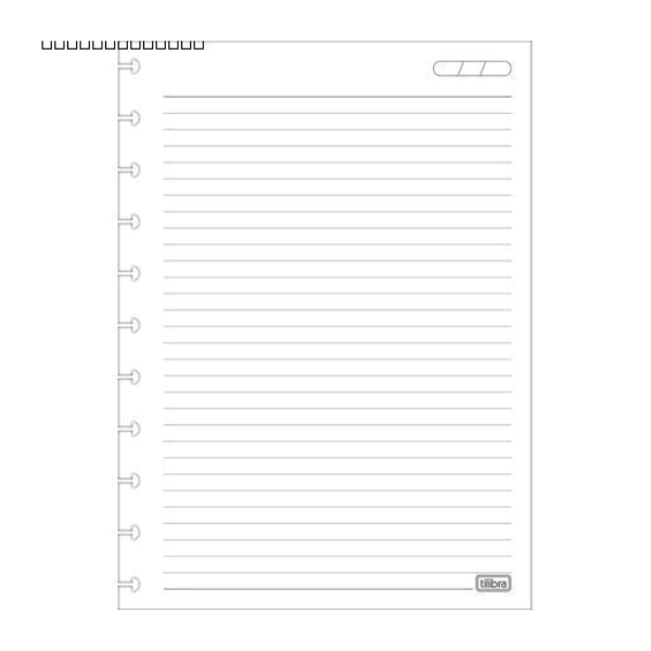 As Folhas Soltas para Tilidisco 80 Folhas têm gramatura de 90 g/m² para facilitar o encaixe dos discos e oferecer mais possibilidades de escrita com diversos tipos de canetas. O produto possui furação para 11 discos e pautas decoradas.
