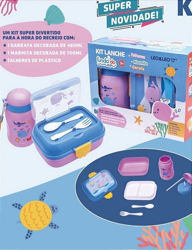 O kit é ideal para escolas e passeios. Leve um pedacinho do oceano para suas refeições diárias!