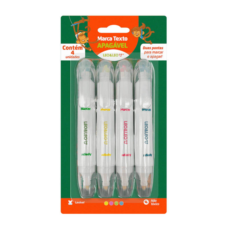 O Marca Texto Apagável é a ferramenta perfeita para quem deseja dar um toque especial às suas anotações e estudos. Com quatro cores neon vibrantes, você pode destacar informações importantes de forma prática e divertida.