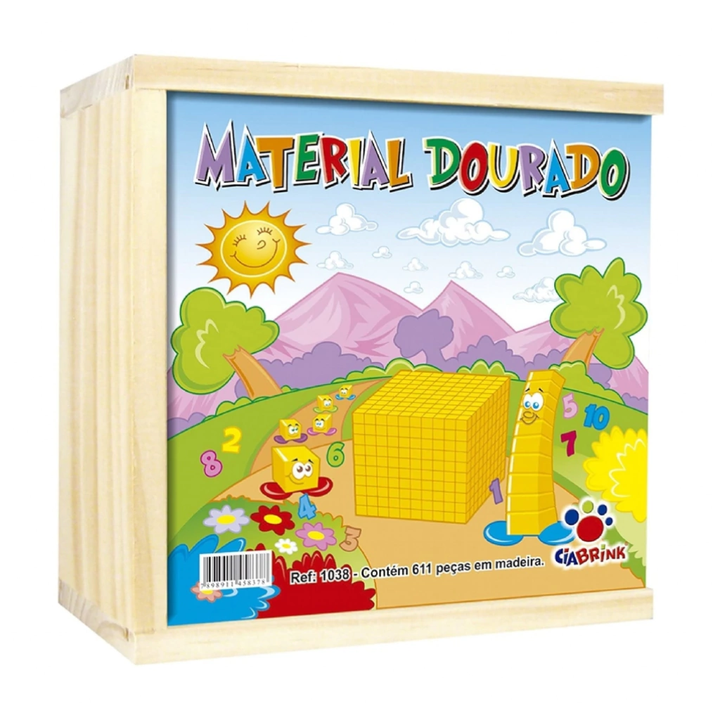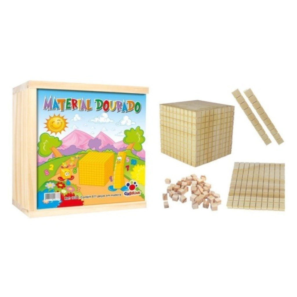 Material Dourado de Madeira 611 Peças Ciabrink Estimula a atenção e a noção de unidade, dezena e centena e a realização de operações matemáticas.
