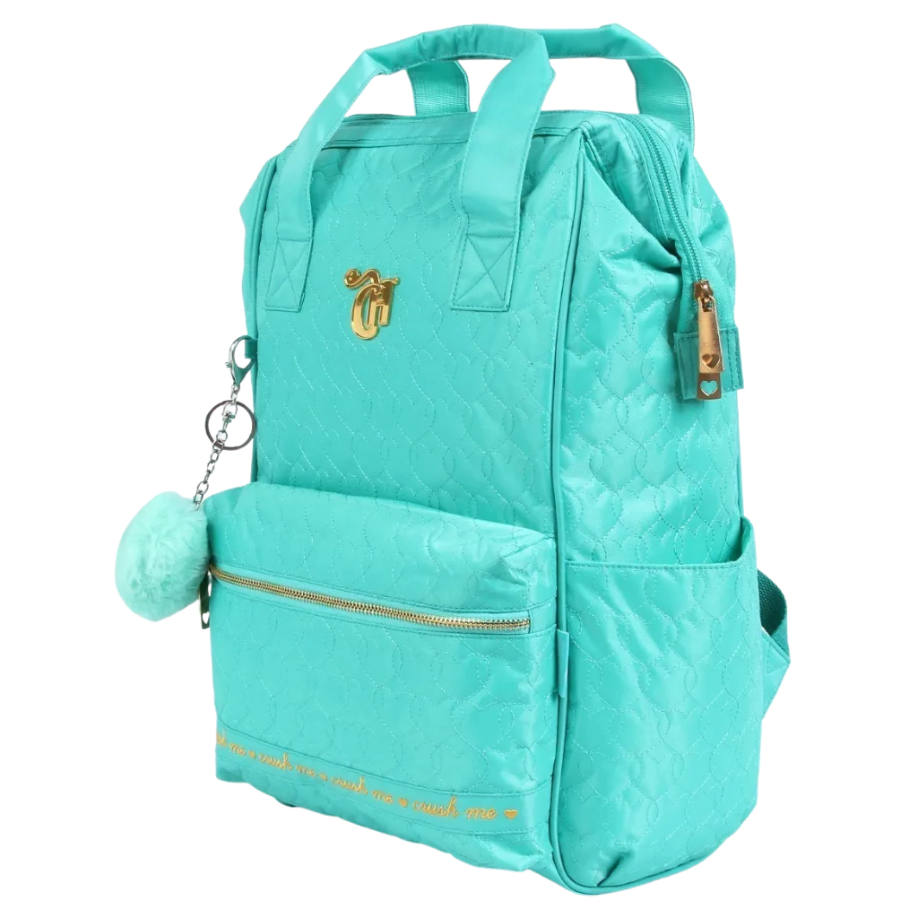Mochila Capricho Love x Green, com bolso frontal e lateral, logo em metal, alça de mão e alça das costa . Prática para seu dia dia. Chaveiro de coração em pelúcia. Faça da praticidade uma aliada do seu dia com bolsas e mochilas Capricho. O modelo tem design moderno e criativo que abriga seus pertences com comodidade, deixando tudo ao seu alcance. Mochila Capricho Love x Green. Produto original licenciado pela DMW, com bolso frontal e lateral, logo em metal, alça de mão e alça das costa .