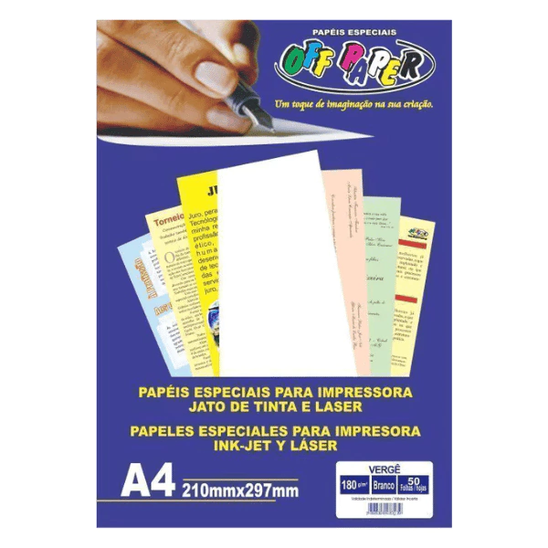 Papel texturizado (Vergê) para impressoras jato de tinta e laser.