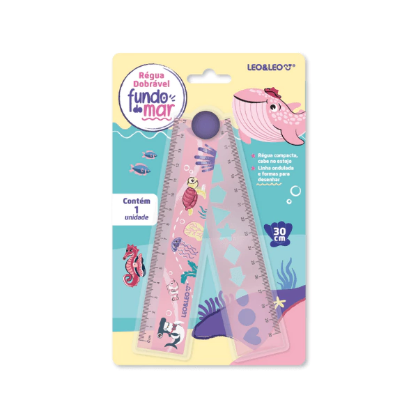 A Régua Dobravel da marca Leo&Leo é um acessório essencial para quem busca praticidade e estilo na hora de estudar. Com um design divertido e temático, esta régua é perfeita para crianças que adoram as profundezas do oceano e suas criaturas.