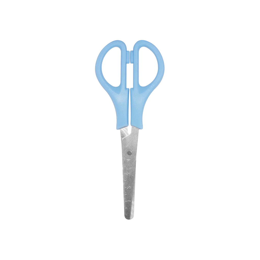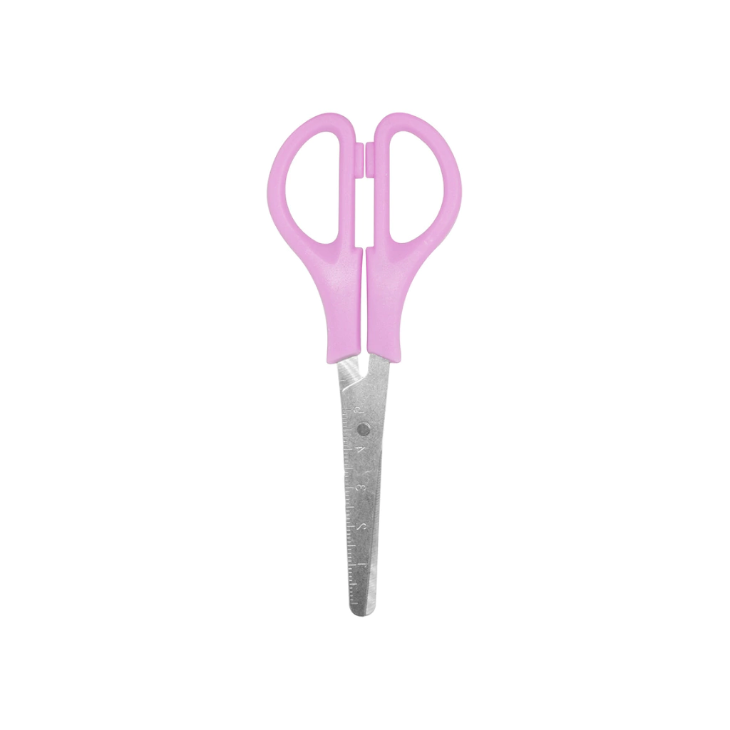 Tesoura Escolar Infantil com ponta redonda para não se tornar um risco a criança, lâmina resitente de aço inoxidável, pequena régua a lâmina da tesoura de 6cm, já as cores pasteis são a sensação da garotada!